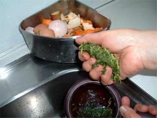 | 1. 生ゴミは水気をよく切ります。茶ガラも絞ります。 |