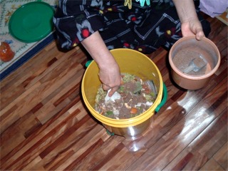 | 5. 最後にフタをする前に、上からEMボカシをかるくふりかけます。 |